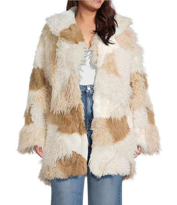 Azalea WangPlus Size Taher Faux Fur Patchwork Shawl Collar Oversize Trench Coat