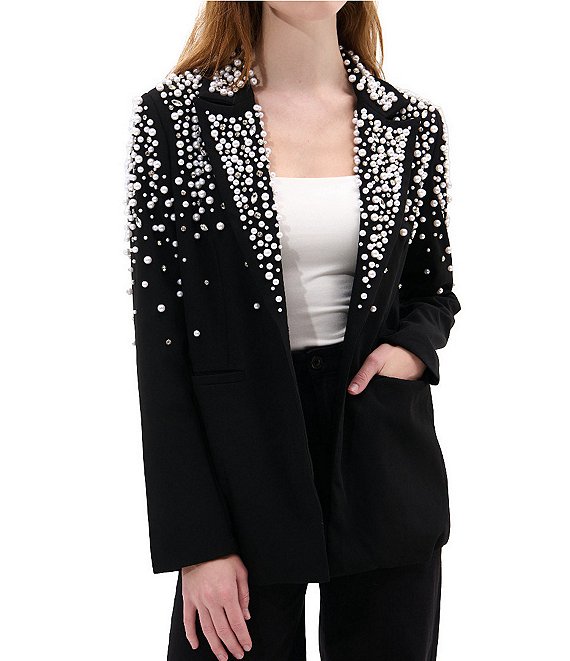Azalea WangTatiana Solid Pearl Accent Notch Collar Button Front Blazer
