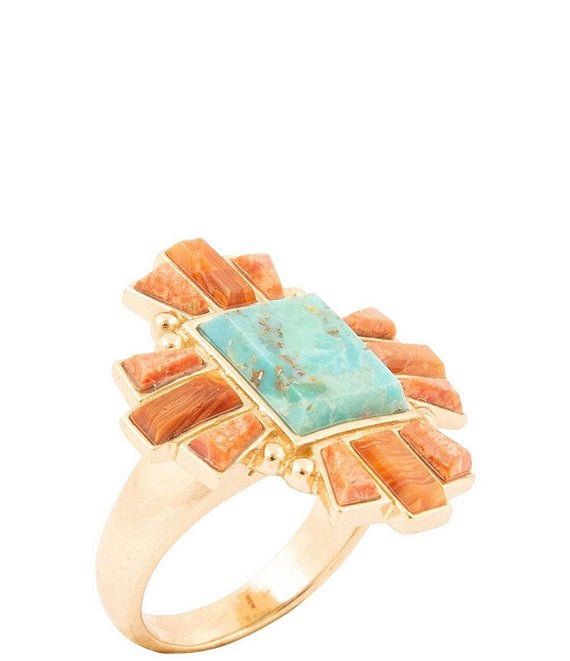 BarseSanta Fe Turquoise and Copper Opal Golden Statement Ring