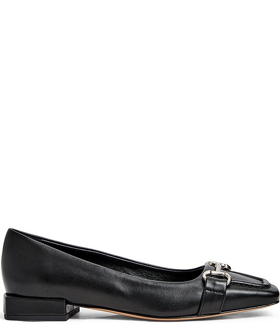 From Bruno Magli, the Perla Leather Bit Buckle Square Toe Flats feature:
