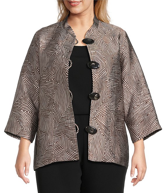 Caroline RosePlus Geometric Jacquard Stand Collar 3/4 Sleeve Button Front Jacket