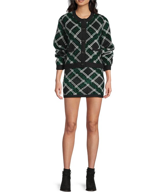 Copper Key Argyle Sweater Coordinating Mini Skirt, Black Multi - Image 1