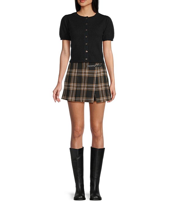 Copper Key Plaid Buckle Mini Skirt, Black Tan - Image 1