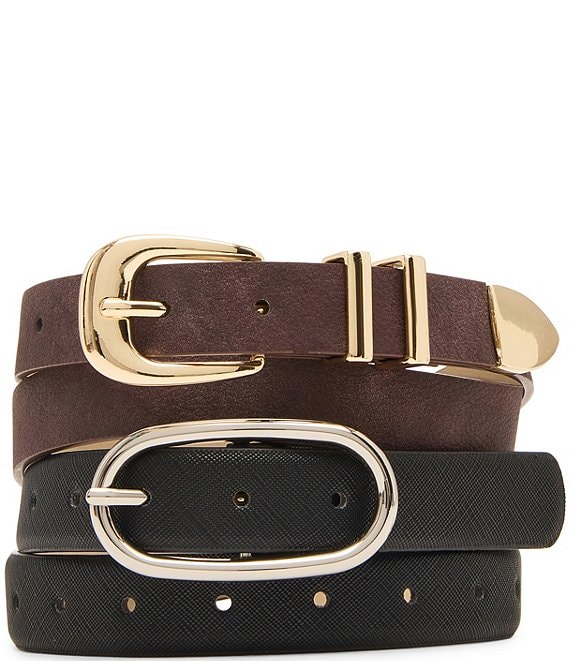 From Dillard's, the 1.25" Nubuck & 1.18" Full Perforated Feathered Edge Saffiano 2 For 1 Belt Set features: