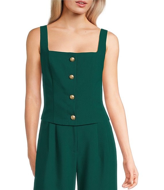 I.N. San FranciscoButton Front Cropped Coordinating Vest Tank