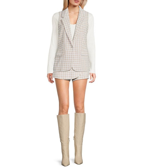I.N. San FranciscoCheck Boucle Button Front Coordinating Suiting Vest