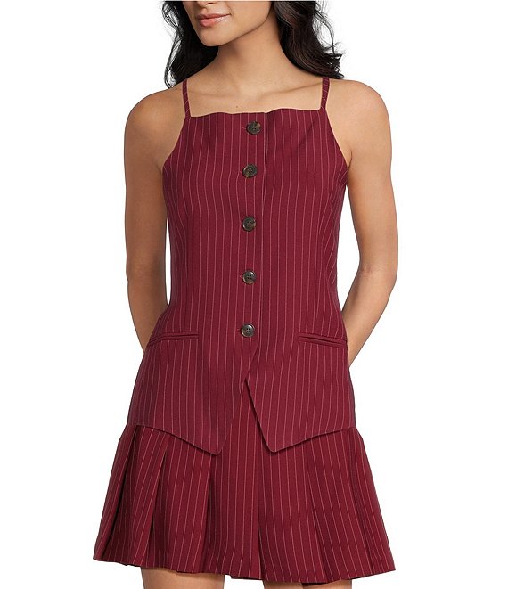 I.N. San FranciscoPin-Striped Square Neck Button Front Coordinating Vest