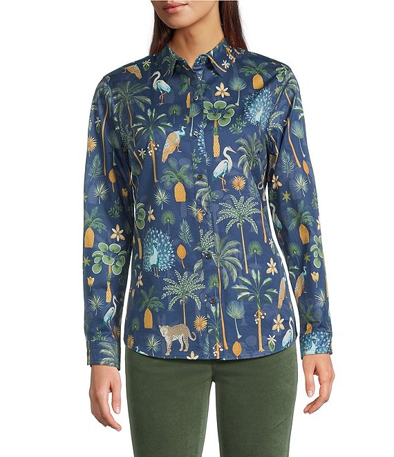J.McLaughlinLois Printed Point Collar Long Sleeve Button Front Blouse