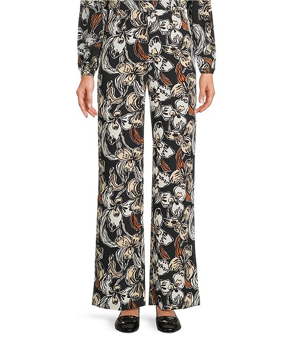 Lilly PulitzerRosamaria Coordinating Onyx Irisistable Printed Crepe Flat Front Pull-On Palazzo Pants