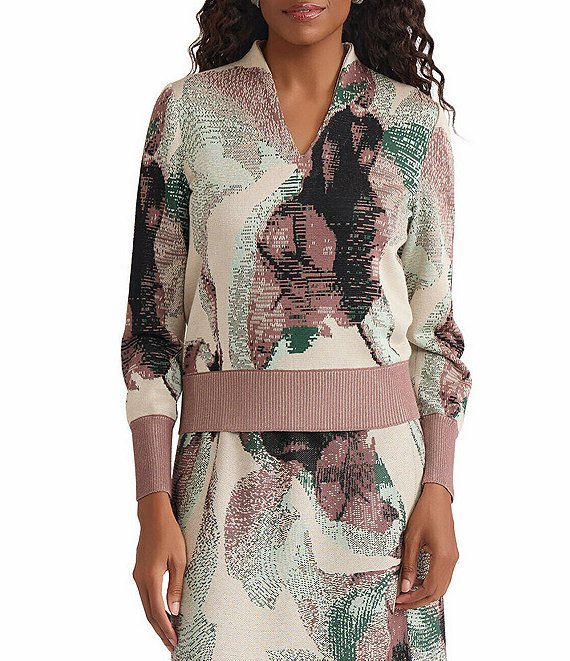 MISOOKAbstract Jacquard Soft Knit V-Neck Long Sleeve Coordinating Sweater