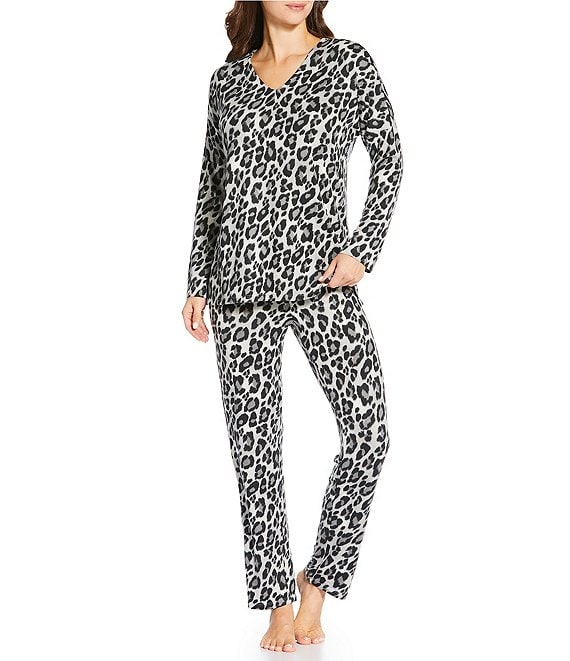 NatoriN By Natori Leopard Print Long Sleeve V-Neck Sweater Knit Coordinating Lounge Set