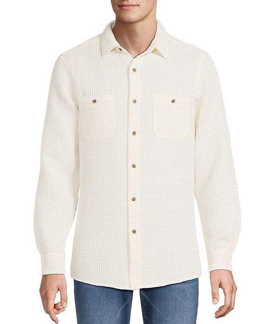 RowmBig & Tall Long Sleeve Solid Waffle Button Front Shirt
