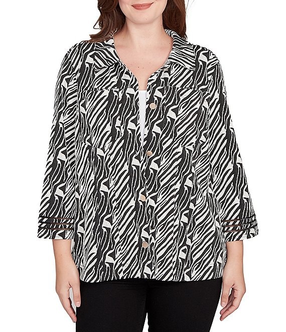 Ruby Rd.Petite Size Jacquard Knit Zebra Point Collar Bracelet Sleeve Button-Front Swing Jacket