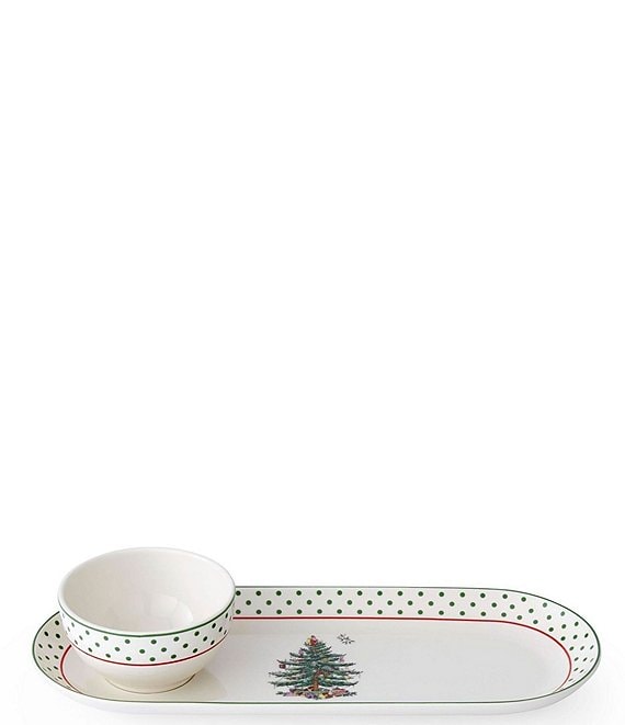 SpodeChristmas Tree Polka Dot Oval Chip and Dip Set