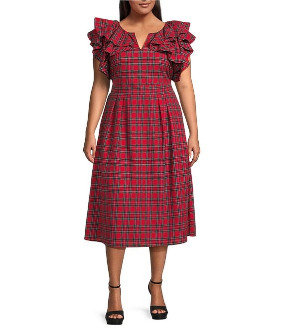 SugarlipsPlus Size Arvada Plaid Print Santana Tie Back Split V-Neck Midi Dress