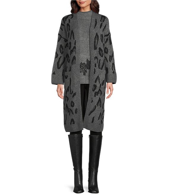 Vince CamutoLeopard Print Long Sleeve Open Front Cardigan